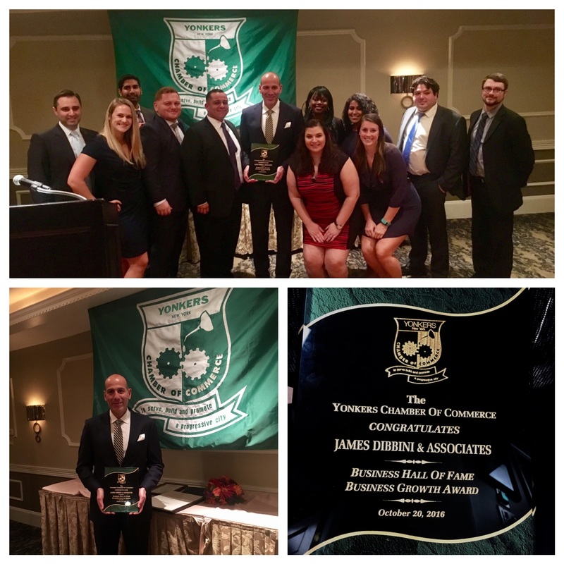 - James G. Dibbini & Associates, P.C. is proud to announce that The Yonkers Chamber of Commerce Business Hall of Fame has honored our firm with the Business Growth Award for 2016. It is an honor to receive this award and we would like to thank our dedicated clients and amazing staff for making this award possible.